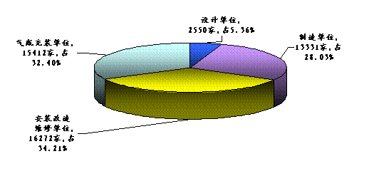 我國現有特種設備生產(含設計、制造、安裝、改造、維修、氣瓶充裝)單位47565家,持有特種設備許可證48508張,單位數比2008年增加 12%。