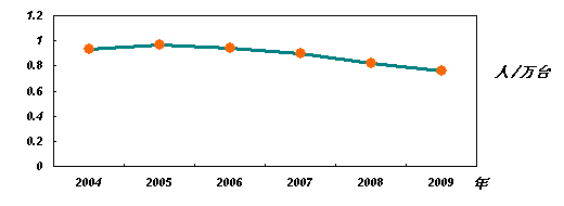 2004年至2009年萬臺設備事故死亡人數趨勢圖