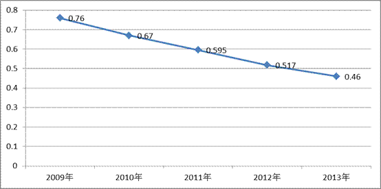 圖三:2009-2013年萬臺設(shè)備死亡率曲線圖