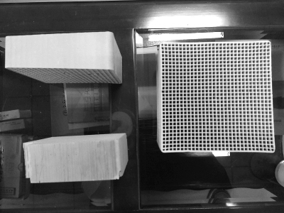 日前記者在北京工業大學的一棟實驗樓里見到了這兩種催化劑材料的樣品。粗一看,它們就是長方體,只是在中間密密麻麻分布著小孔,“長方體橫截面邊長為15厘米,40孔意味著這個橫截面有40個小孔,這段材料有40條煙氣通道。”李堅解釋道,從鍋爐里排放的二氧化氮、一氧化氮等污染氣體加氨后通過這些催化劑材料,會發生還原反應,變成氮氣和水,“氮氣是地球大氣最主要的成分,和水一樣對生物有益無害。”李堅說。