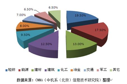 (2)能源與化工業也是工業鍋爐的主要用戶,約占27%,年需求量約7.29~8.1萬蒸噸/時。石油開采、煉油、合成氨、乙烯、橡膠及燒堿各業需要多種工業鍋爐,包括開工輔助鍋爐、工藝廢氣余熱鍋爐、油田注汽鍋爐以及自備熱電站鍋爐等。