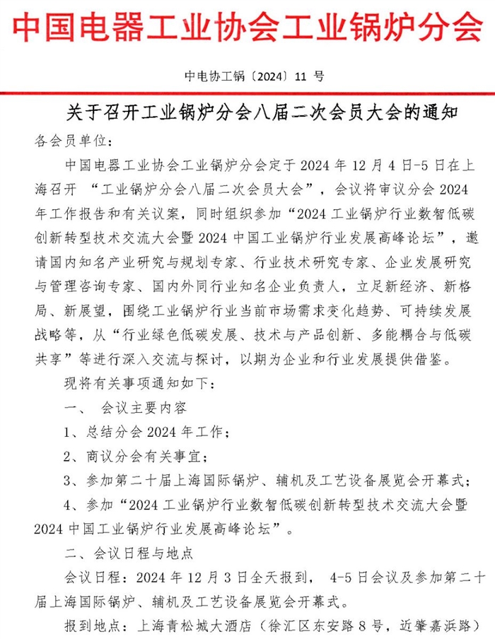 關(guān)于召開工業(yè)鍋爐分會八屆二次會員大會的通知